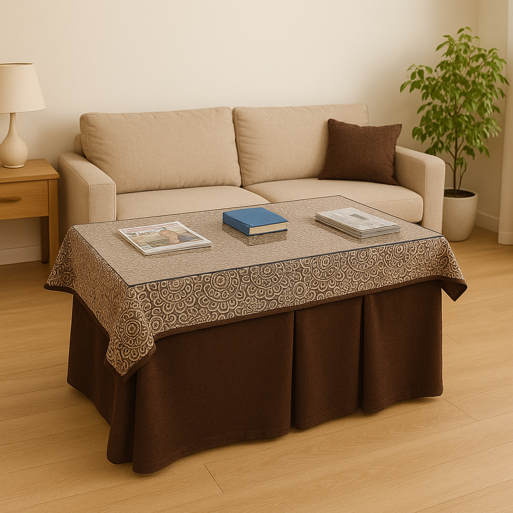 Fantástica mesa camilla completa rectangular con tarima para brasero, cristal y tapete. ¡Unidades limitadas, solo hasta fin de existencias!.
